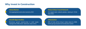 In the fiscal year 2024-25, the government has bolstered its capital expenditure by 11.1% to $133 Bn, equivalent to 3.4% of the GDP. Such investments are poised to catalyze growth within the construction sector, fostering the development of modern infrastructure nationwide.